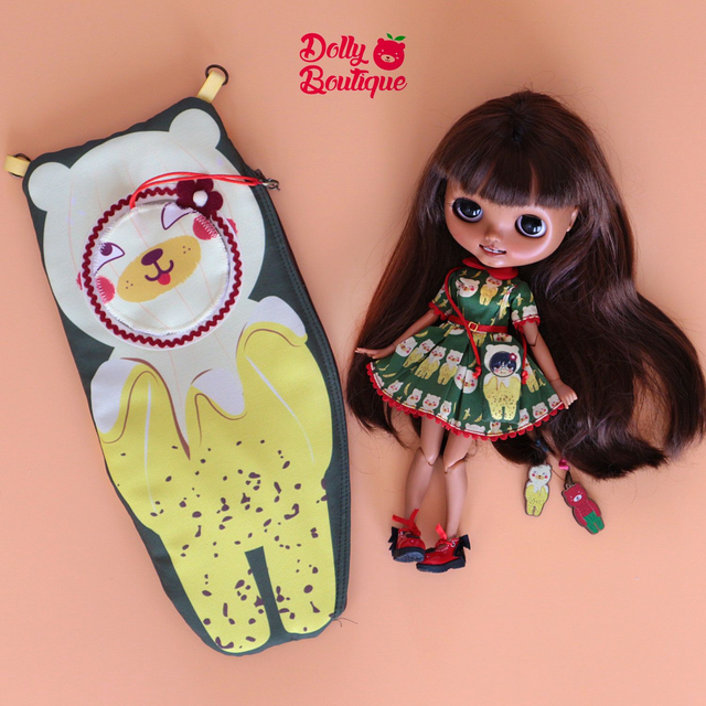 The Doll Carrier Frutoso Banana! Transform your girl into the cutest fruit ever and travel with your baby in a yummy, cute and safe way! This doll carrier is for Blythe dolls and Pullip dolls (with stock bodies).