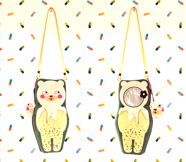 Each bag is made of high quality double-sided printed canvas fabric and it is waterproof. On the front side, there is the design of the Frutoso bear with a transparent window on top where you can see the head of you doll. On the back side, there is the whole Frutoso design. Inside this Frutoso doll carrier is lined with a very soft and cozy fabric.