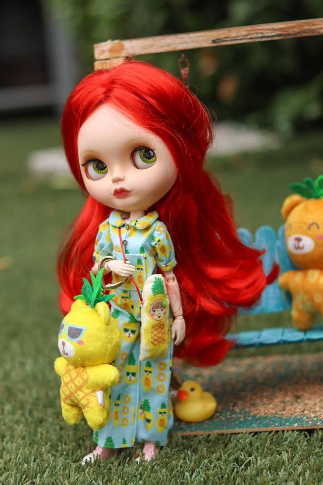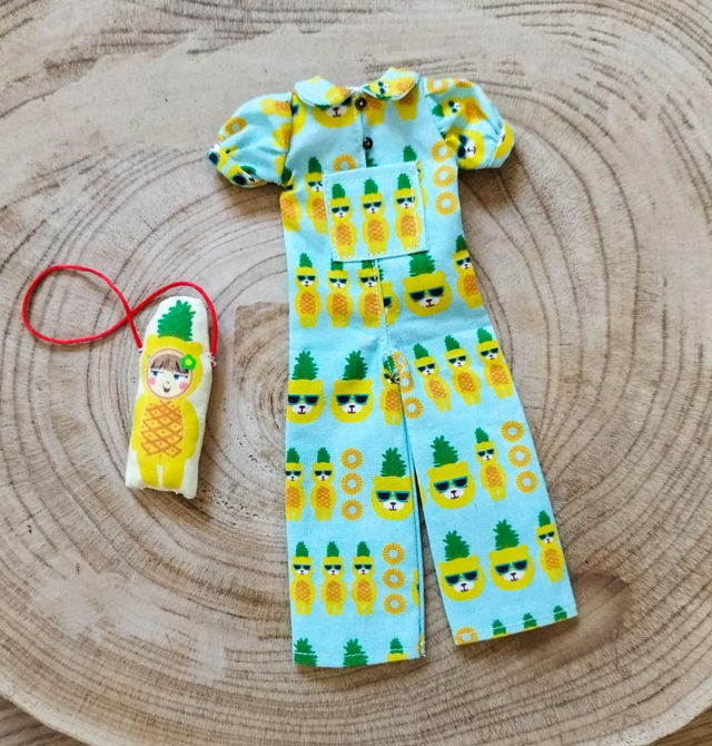 Pineapple Frutoso Jumpsuit for Blythe dolls. Includes Jumpsuit and mini bag. Fits Blythe with stock bodies and obitsu until 24cm size