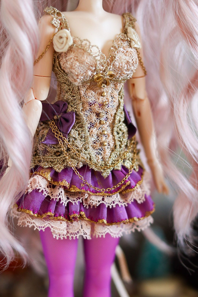 Golden frills outfit for Pullip dolls, made with very delicate and high quality fabrics. Doll in pictures is wearing a Obitsu SBH M body.